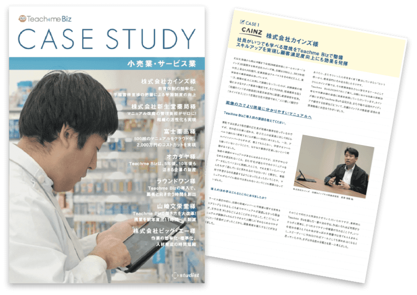 Teachme Bizを導入頂いた小売業の企業様にインタビュー。抱えていた課題から、実際に現場でどのようにマニュアルを使い、生産性の向上に繋げたのか7社の事例をご紹介しています。