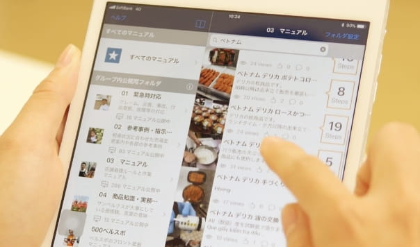 Teachme Bizを使えば、動画や画像付きのマニュアルを標準化して、全店舗で同じオペレーションを実施できます。文字だらけのマニュアルでは伝わりにくいレジ接客のコツや機械操作の方法が、細かい手順を視覚化することでより理解しやすくなります。