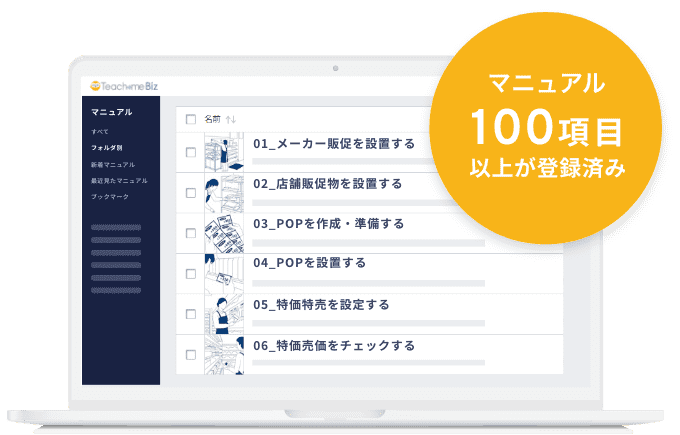 100項目以上の基本業務のマニュアルが利用開始時にすでに入っているので、
