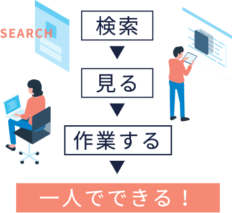 マニュアル作成ツールNo.1のTeachme Bizは、手順書を簡単に作成できるだけなく、優れた検索性を誇り、必要な手順書をすぐに探すことが可能です。誰かに聞かなくても、必要な情報を自分で探して、手順書を見ながら正しい手順で業務を遂行できます。作業者の業務が効率化はもちろん、教える側の負担を軽減し、業務のミス防止にも繋がります。